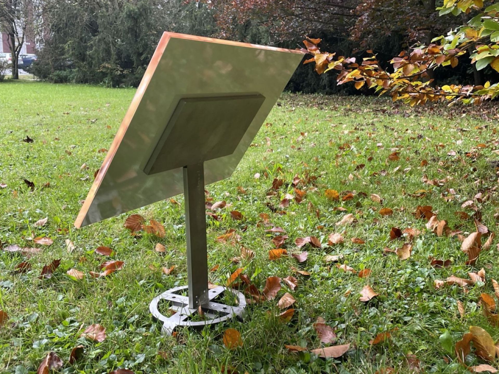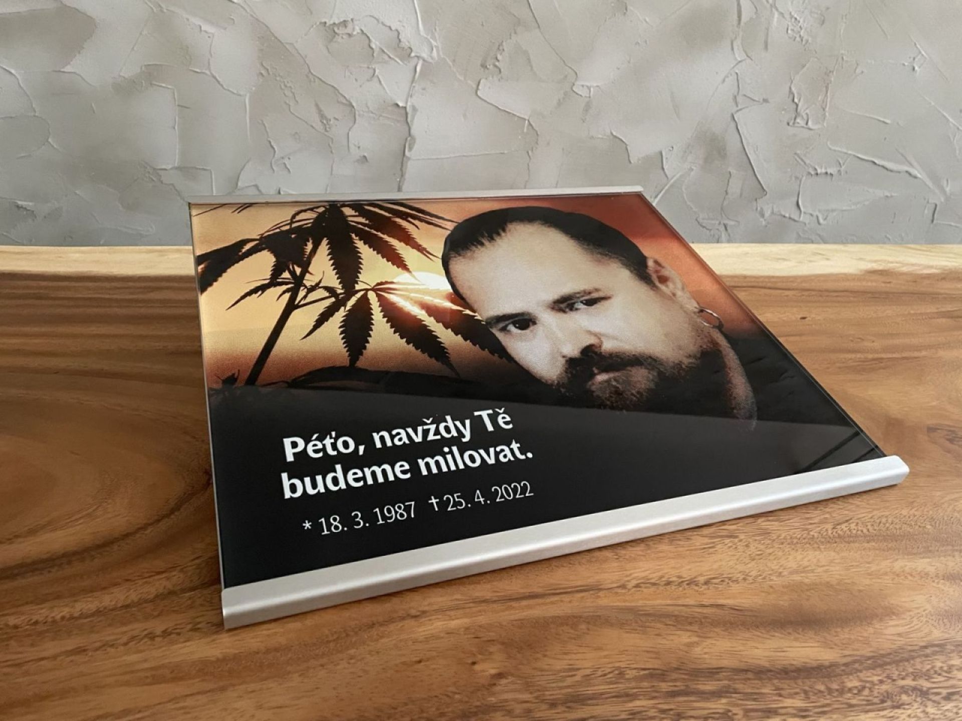 We manufacture glass memorial plaques from tempered glass (ESG), as well as in the safety laminated tempered glass (VSG) version, which meets regulations for glass railings or glass roofs. These plaques are made up to a size of 2 x 4 meters and can be mounted on building facades using point brackets, inserted into metal frames, or embedded in a concrete base with pre-prepared anchors. In special cases, we can design and create custom constructions according to the customer's needs. For these products, we similarly guarantee color stability in outdoor environments for 100 years.
